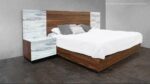 It gets assembled on-site fixing the headboard with the nightstands and base all together.