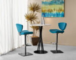 Revel in the pure fun and calm, supportive comfort of the Bliss stool. The soft arcs of the back suggest a cheerful, carefree smile, which is reinforced by the broadly curved seat. Generously padded seat and back cushions are available in all Elite fabrics and leathers. The hydraulic lift column easily adjusts from counter to bar height, and sports a Polished Chrome footrest. Steel column, base, and back support are available in any Elite powdercoat finish. Companion dining chair also available