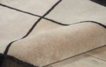 Rich warm tones ofmink browns, Mediterranean sands, and chic greys blend together effortlessly in this cubistdesign of wool and silk.