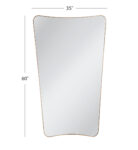 The Garcia Wall Mirror features a sleek rectangular design complemented by rounded corners and an elegant inverted arching top and base. Its modern aesthetic adds a touch of sophistication to any room, while the timeless gold finish exudes opulence & style, blending contemporary design with timeless elegance for a stunning focal point.