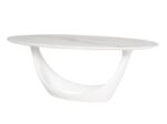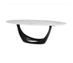 The sculptural base of the Montana Dining Table is unique and intriguing. Its smooth lines and minimalist curves create a refined drama that is perfectly balanced by the ceramic oval top. Pair with equally artful chairs for a dynamic dining space.