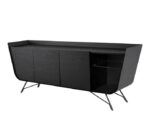 As a modern day interpretation of an iconic mid-century silhouette, the Noori Sideboard evokes an air of ’50s and ’60s flair. Its slightly arched outer shell creates a subtly angled edge. Fitted with an asymmetrical open glass shelf, veneer wood doors and expansive top, the Noori Console is a versatile design, suited for an entryway, living room or dining space.