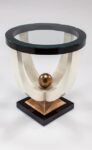Finish: Antiqued white, dark sable and coppery gold blended metallic details