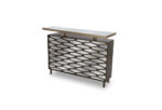 Sexy and stylish, the Skew bar features your choice of three laser-cut screens, dynamically skewed shapes, and a stainless steel mirror panel for excitement and sparkle. Glossy white glass is inset into the trapezoidal bar top for both style and durability. The angled bar body features built-in bottle storage and two adjustable tempered glass shelves. You can mix-and-match any Elite powder-coat finish on the bar top and body. Choose between the Stones, Hex, or Array screen motif to complement your décor. This bar easily coordinates with any of our popular barstools. Let the Skew bar be the center of attention at your next party!