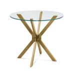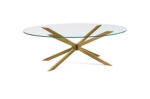 The Tess oval cocktail base features industrial sprocket styling in a gold finish. Clear oval glass top.