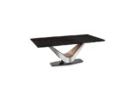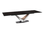 The strong geometry of Victor’s boldly tapered chevron-shaped body, clad in striking panels of brushed stainless steel and rich walnut veneer, converges to create a modern sophisticated dining environment. We have paired this striking silhouette with our new extension mechanism for the utmost in ease, flexibility, and strength. Our extension mechanism provides smooth travel and exceptional rigidity, with none of the shakiness or noise of other extension tables. For a truly stunning effect, choose from two Italian ceramic tops: Nero in a gloss finish, or Blanco in a luscious matte finish. Or you can choose to have tempered clear glass tabletops so the beauty of the base is fully visible. This patented design lets the entire body appear to hover above an understated steel base, which is available in any Elite powder-coat finishes. The striking walnut veneer panel is offered in your choice of Elite wood finishes. Although shown with our new Luxe dining chair, Victor will easily coordinate with any of our popular dining chairs. Companion desk, dining tables, and occasional tables are also available.
